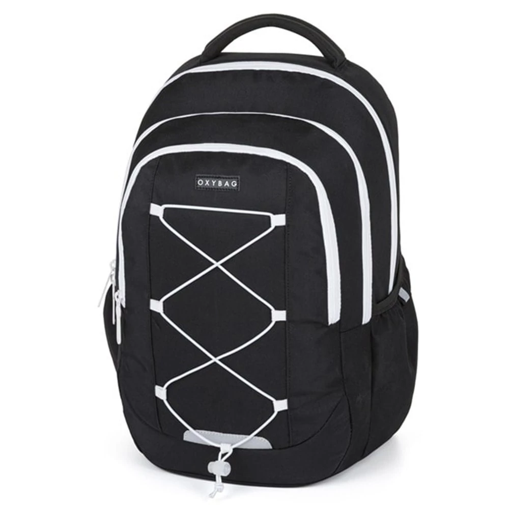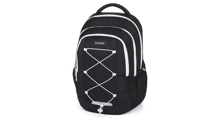 Az OXY Touch hátizsák ideális választás 3. osztálytól. Háromrekeszes kialakítása bőséges helyet biztosít tankönyveknek, füzeteknek, uzsonnának és egyéb szükséges felszereléseknek. A fő rekeszben laptopzseb található, az elülső zsebben pedig rendszerező és kulcskarabiner. Az oldalzsebben kényelmesen elfér egy kulacs. Az anatómiailag formázott, légáteresztő hátrész, valamint az állítható váll- és mellkaspántok kényelmes viseletet biztosítanak teljes terhelés mellett is. A megerősített, vízálló alj védi a tartalmat a nedvességtől, a fényvisszaverő elemek pedig növelik a biztonságot. Az elején praktikus gumipánt található, amely alá például egy vékony pulóver rögzíthető. Űrtartalom: 25 l, teherbírás: 8 kg.