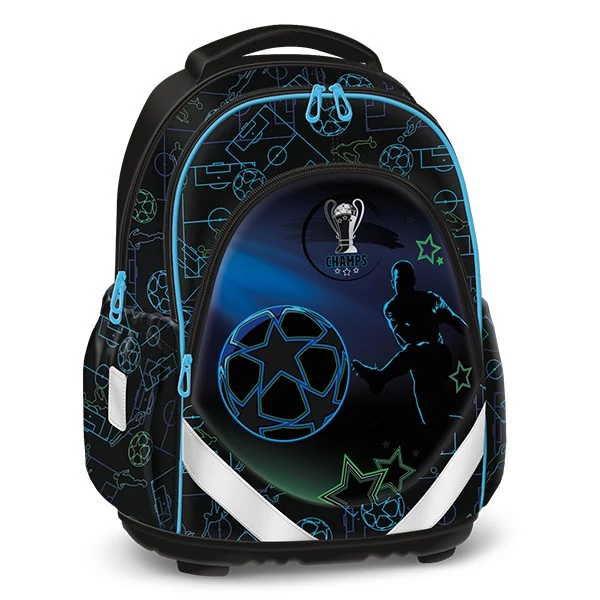 Hátizsák formájú iskolatáska, amely ideális kisiskolásoknak. Ergonómikus kialakítású, szellőztető barázdákkal teli és műanyag merevítésű hátkiképzéssel. Puha, méretre állítható vállpántokkal, amelyekekkel szabályozható, hogy mennyire álljon feszesen a gyerek hátához simulva a táska. A hátizsák három nagy cipzáras rekesszel rendelkezik,az elsőben toll- és igazolvány tartó rekesz található. Oldalán két gumis zsebbel a kulacs részére. Alja tartós és kemény textillel bevont műanyag. Nagy felületű fényvisszaverő elemekkel elől, oldalt és a vállpántokon. Tetején fogantyúval. Mérete: 330x430x220 mm. Súlya: 0,9 kg. Táska űrtartalma: 23 l. Terhelhetőség: 10 kg-ig. 3 év garancia.