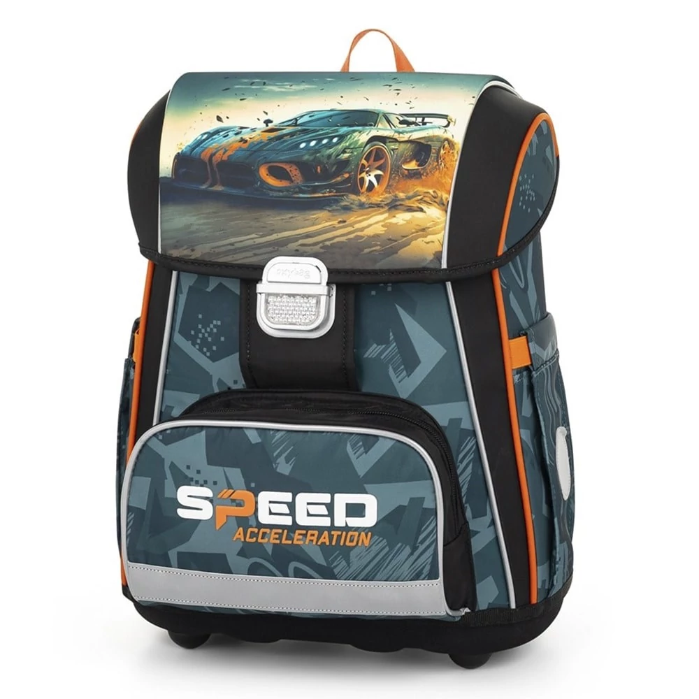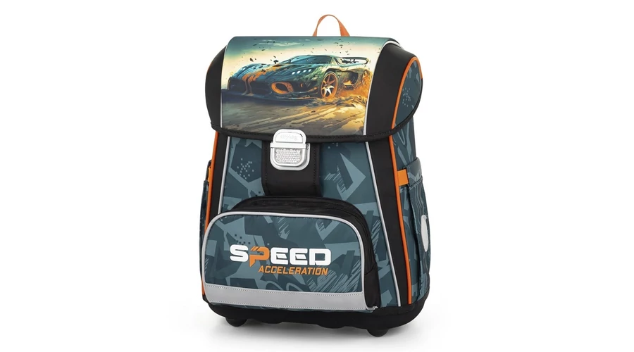 A PREMIUM iskolatáska anatómiailag formázott, így megfelelő illeszkedést biztosít a háton. A megerősített hátrész és belső merevítés megtartja a táska formáját. A párnázás kellemes, légáteresztő anyagból készült, a széles, puha pántok pedig egyenletesen terhelik a gyermek vállát. Az egy nagy rekesz kényelmesen elnyeli az 1–2. osztályosok összes tanszerét. További akasztók is találhatók rajta a pántok rögzítéséhez. A masszív alj védi a tartalmat, és megakadályozza a felborulást. Fém biztonsági csattal záródik, fényvisszaverő elemmel. Az elülső zseb uzsonnához ideális, emellett sok fényvisszaverő rész található rajta. Űrtartalom: 27 l, teherbírás: 8 kg.