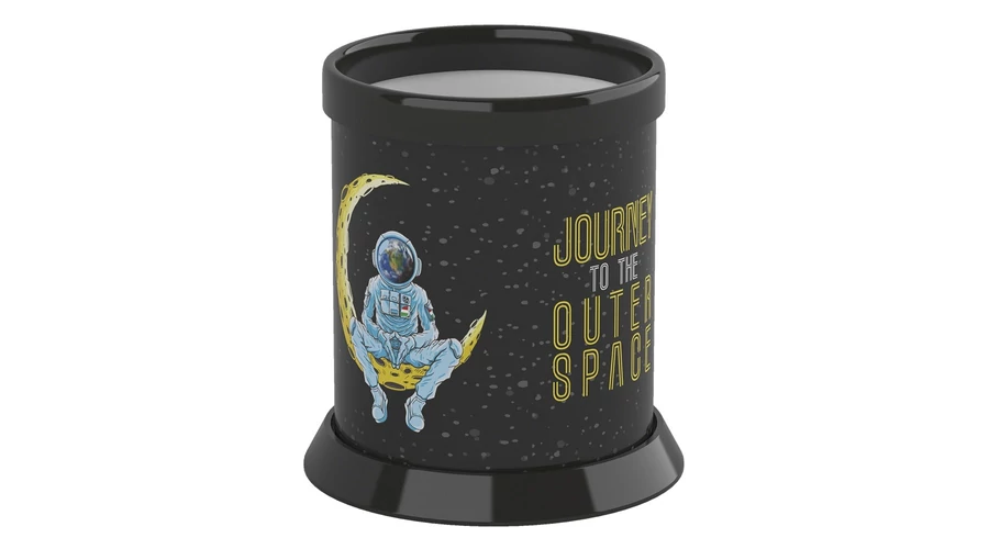 Astonaut motívummal díszített, henger alakú asztali írószertartó.