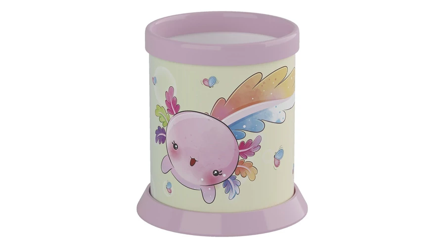 Axolotl motívummal díszített, henger alakú asztali írószertartó.