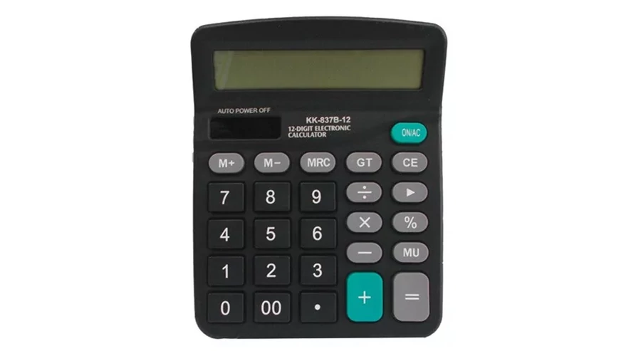 12 digites számológép, döntött LCD kijelzővel, elemmel és napelemmel működik.