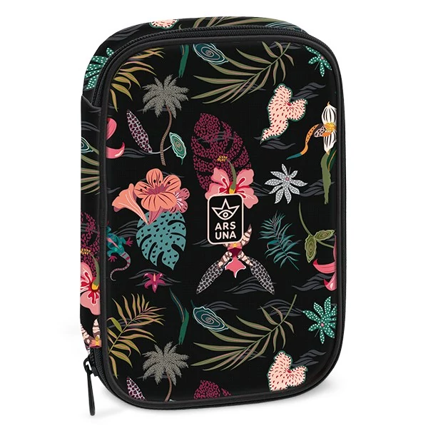 Többszintes, töltetlen, cipzáras tolltartó. Belül textillel bevont merev lapokkal, gumis kialakítással 30 ceruza számára az írószerek tárolásához és egy cipzáras belső zsebbel.