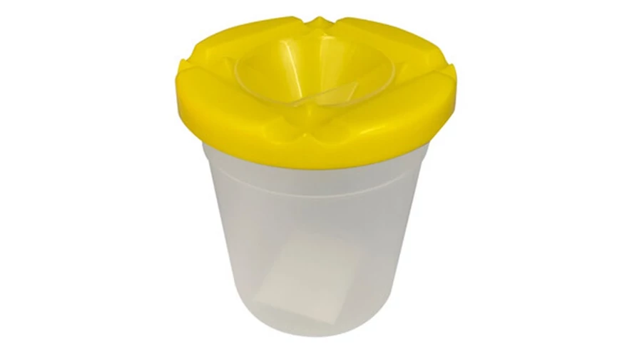 Műanyag ecsetmosó pohár-sárga színű tetővel. A tetőn lévő barázdákba az ecset akár vízszintesen is elhelyezhető. Méret: 7,9 cm x 7,9 cm x 8,6 cm. Súly: 36 gr. Rendelési minimum: 8 db
