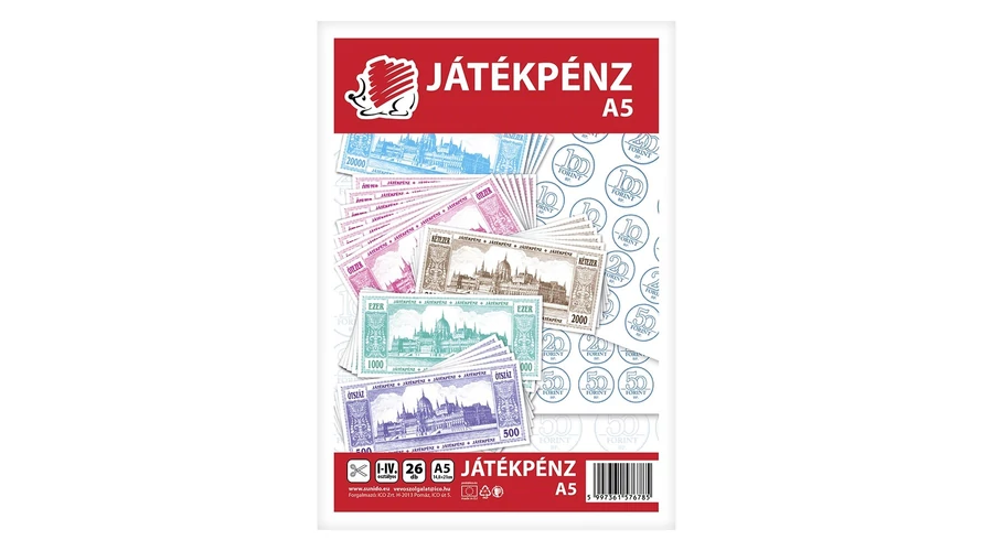 Papír játékpénz, az érmék és a bankjegyek kivághatók.