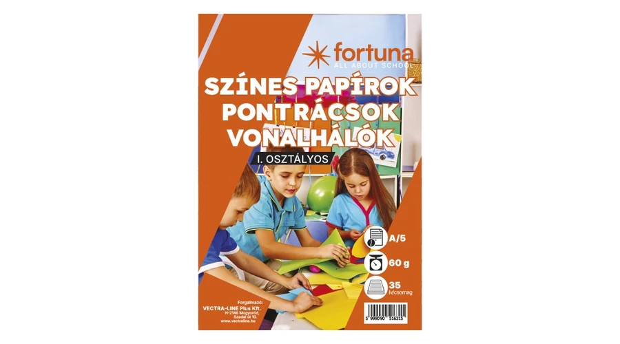 A FORTUNA I. színes pontrácsos papírcsomag elsősök számára készült, hogy megkönnyítse az írás- és olvasástanulás első lépéseit. A pontrácsos elrendezés segíti a betűformák pontos elsajátítását és a szabályos íráskép kialakulását.