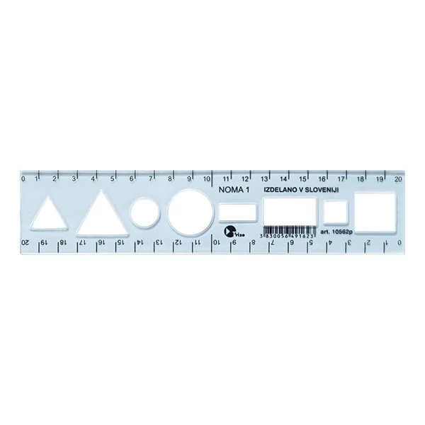20cm hosszú kék sablon vonalzó.