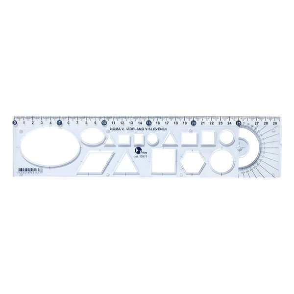 30cm hosszú kék sablon vonalzó.
