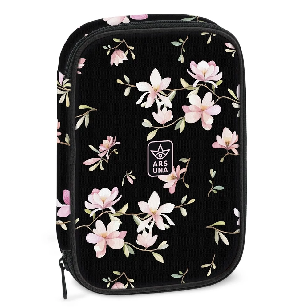 Többszintes, töltetlen, cipzáras tolltartó. Belül textillel bevont merev lapokkal, gumis kialakítással 30 ceruza számára az írószerek tárolásához és egy cipzáras belső zsebbel.