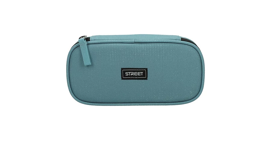 Belül textillel bevont merev lapokkal, gumis kialakítással az írószerek tárolásához, és egy cipzáras belső zsebbel.